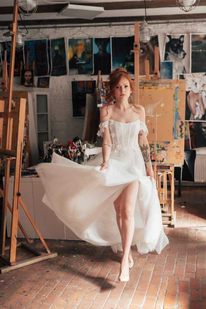 Zapraszamy do naszej pracowni, gdzie elegancja spotyka się z pasją do projektowania, a każda suknia opowiada własną historię.